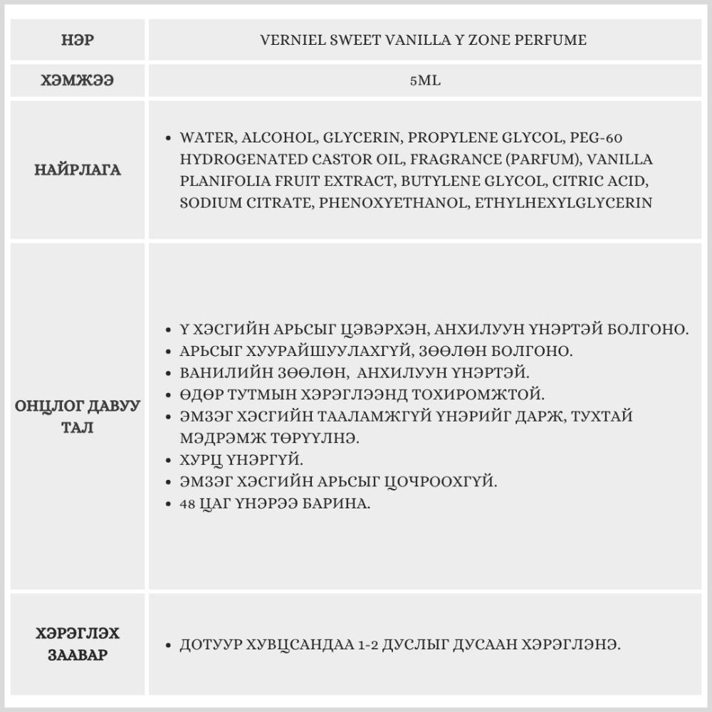 VERNIEL SWEET VANILLA Y ZONE PERFUME