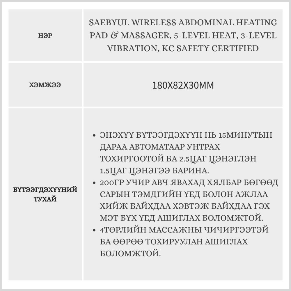 SaeByul Wireless Abdominal Heating Pad & Massager, 5-Level Heat, 3-Level Vibration, KC Safety Certified /Халуун жин/