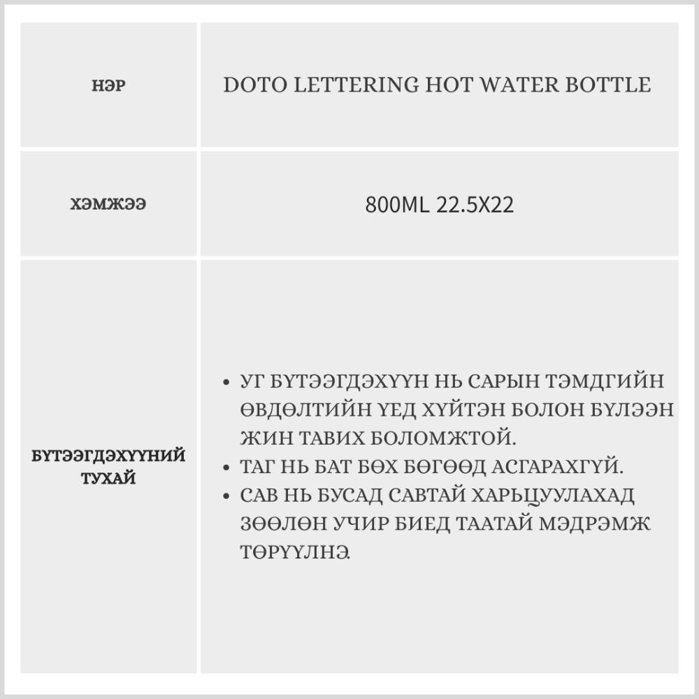 Doto Lettering Hot Water Bottle /Халуун жин/