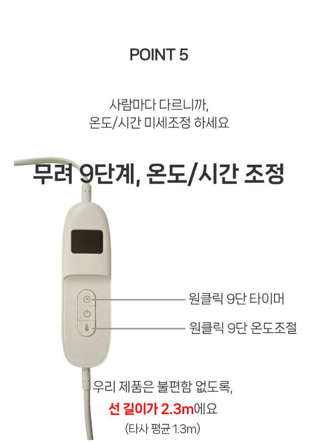 Цаг болон халуунаа тохируулах боломжтой энэхүү халуун жин нь 2.3метрийн урттай залгууртай. Дээд зэргийн материалаар хийгдсэн ба угааж болдгоороо давуу талтай.