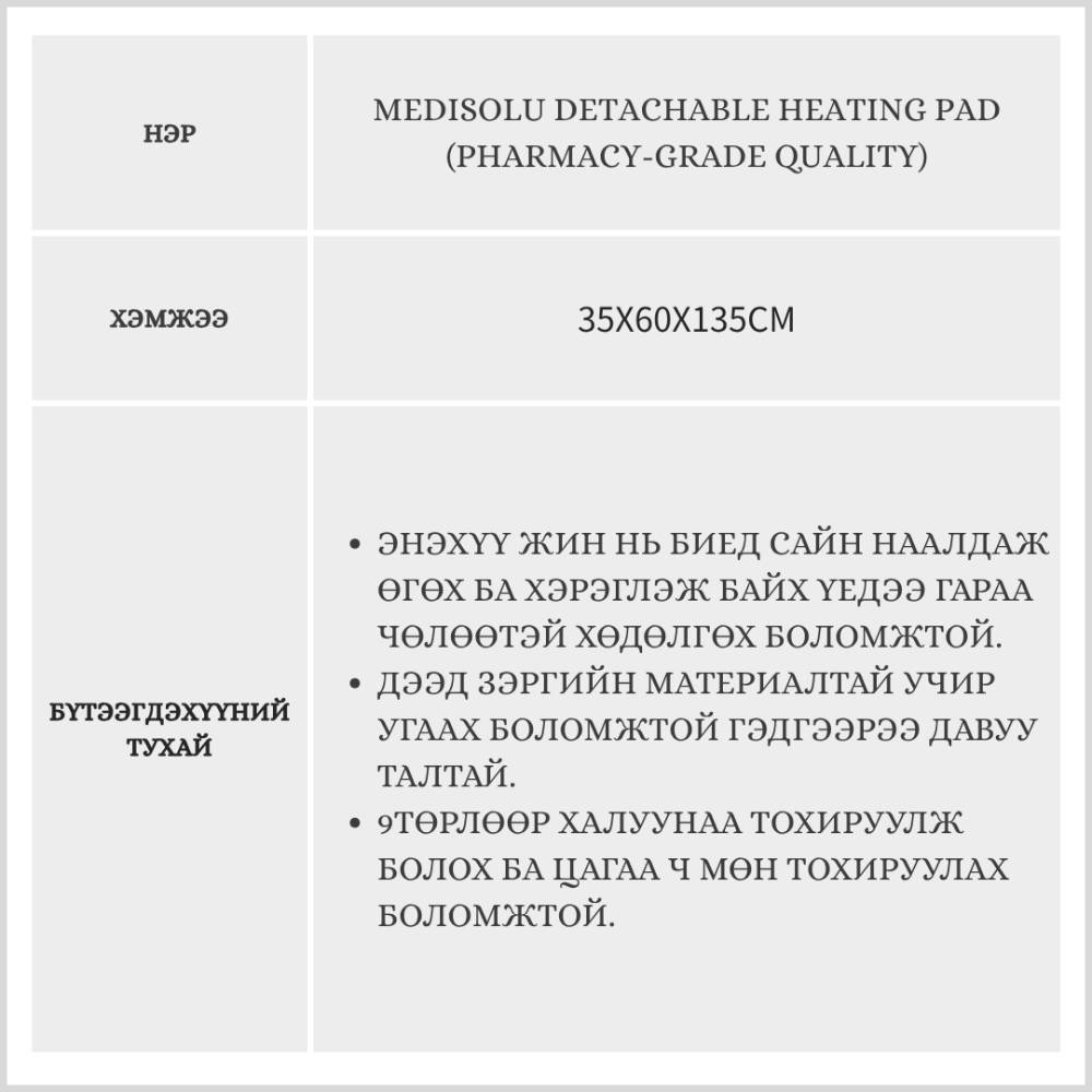 Medisolu Detachable Heating Pad (Pharmacy-Grade Quality) /Халуун жин/