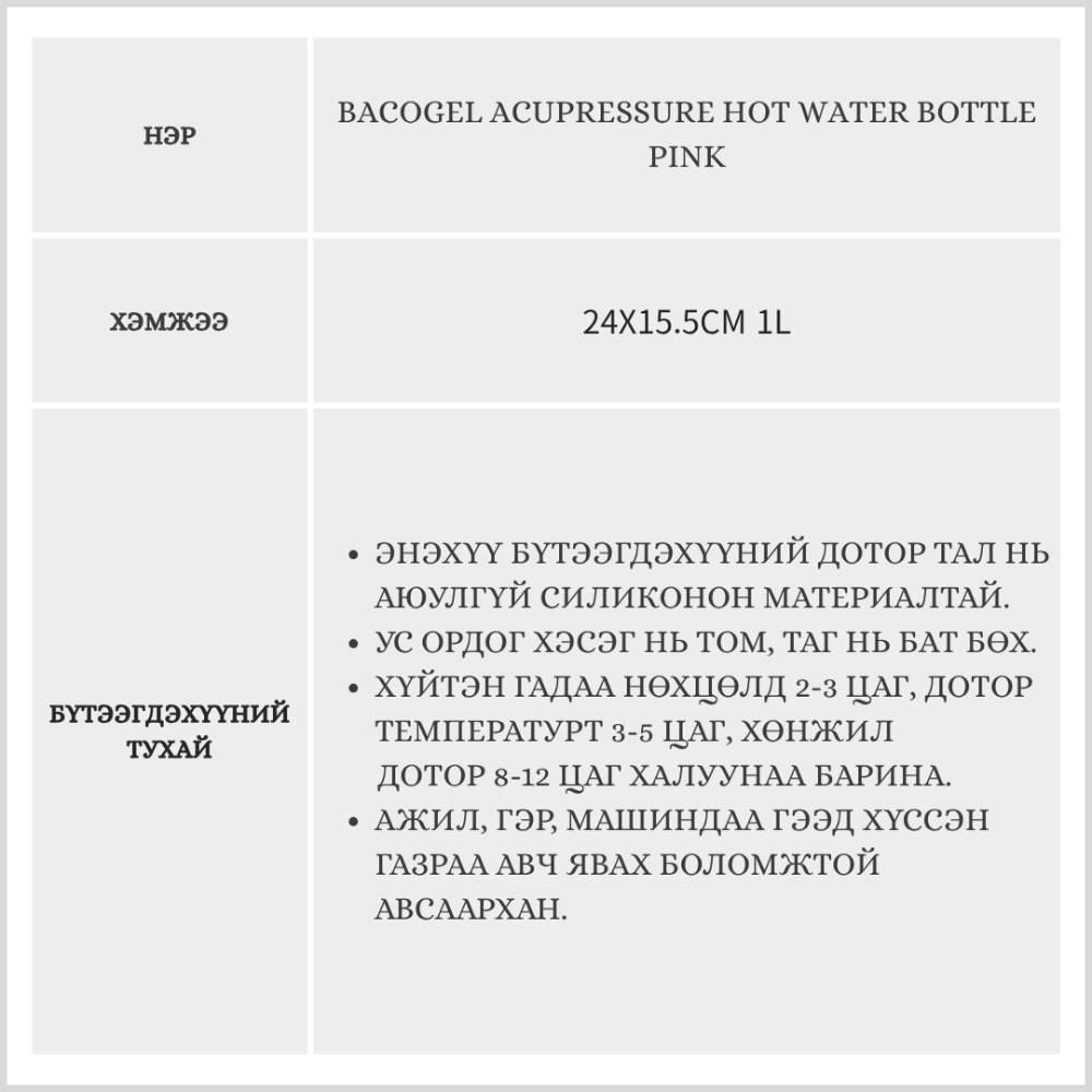 BacoGel Acupressure Hot Water Bottle Pink /Халуун жин/