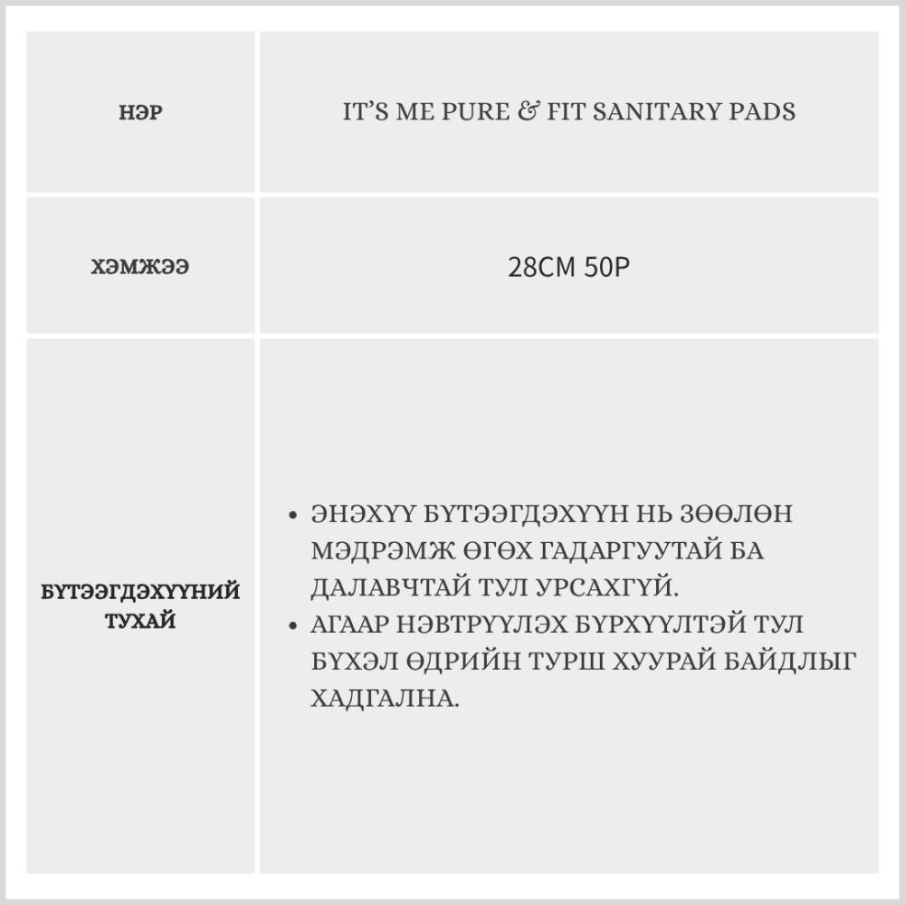 It’s Me Pure & Fit Sanitary Pads /Ариун цэврийн хэрэглэл/
