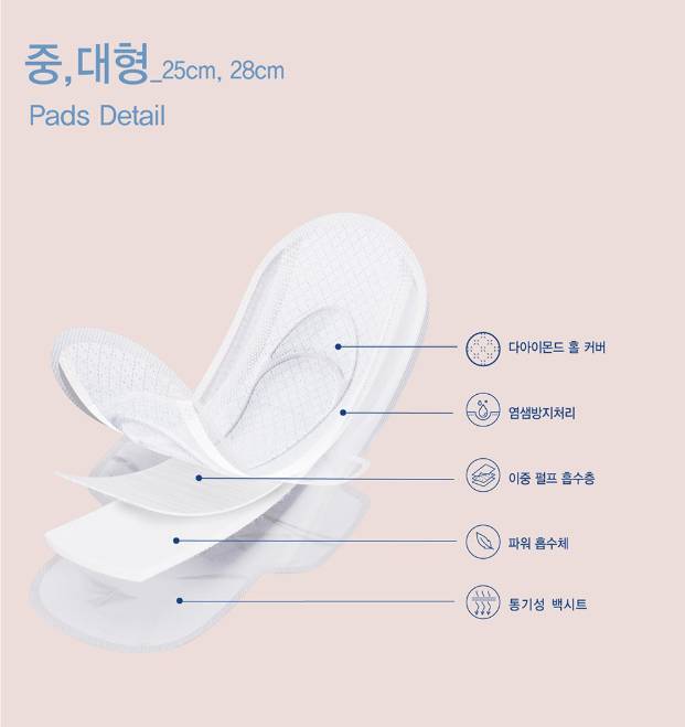 Энэхүү бүтээгдэхүүн нь 28см урттай бөгөөд сарын тэмдэг их ирсэн болон шөнө хэрэглэвэл тохиромжтой. 2 давхар нэвтрүүлэхгүй зөөлөн гадаргуутай бөгөөд агаар нэвтлүүлж арьсыг хуурай байлгана.