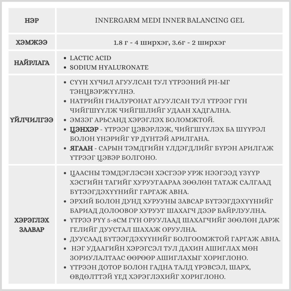INNERGARM Medi Inner Balancing Gel, 1.8g (4) 3.6g (2) /Үтрээний гель/