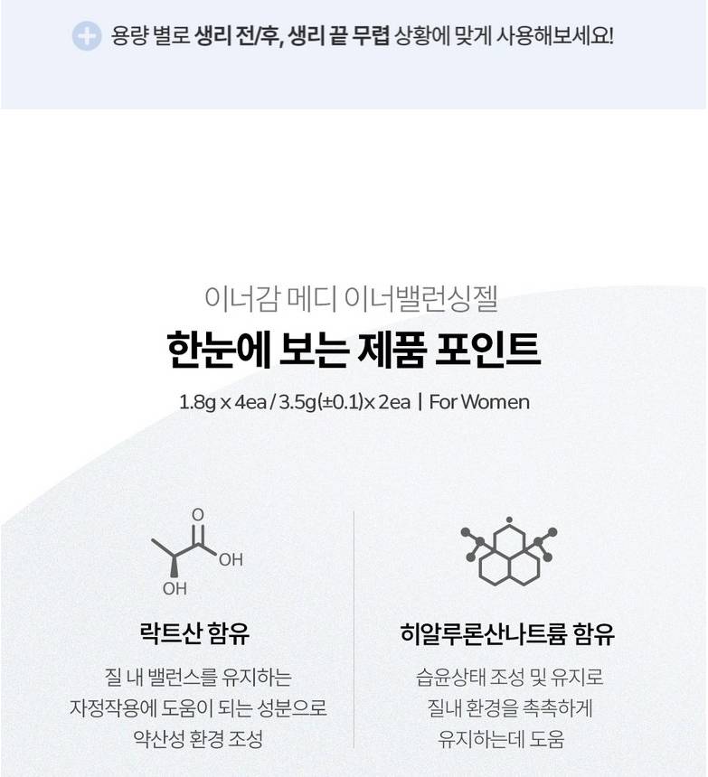 Үтрээг цэвэрлэж, дотоод орчныг тэнцвэржүүлэх цэвэрлэгч гель. Савлагаандаа өдөр тутмын болон сарын тэмдгийн дараах үтрээний цэвэрлэгээ хийх 2 төрлийн гельтэй. Хэмжээ төрлийг өөрийн хэрэгцээндээ тохируулан хэрэглэнэ.