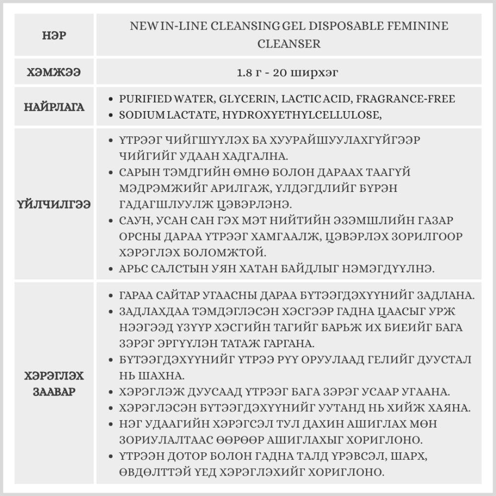 New In‑Line Cleansing Gel Disposable Feminine Cleanser, 1.8g (20p) /Үтрээний гель/