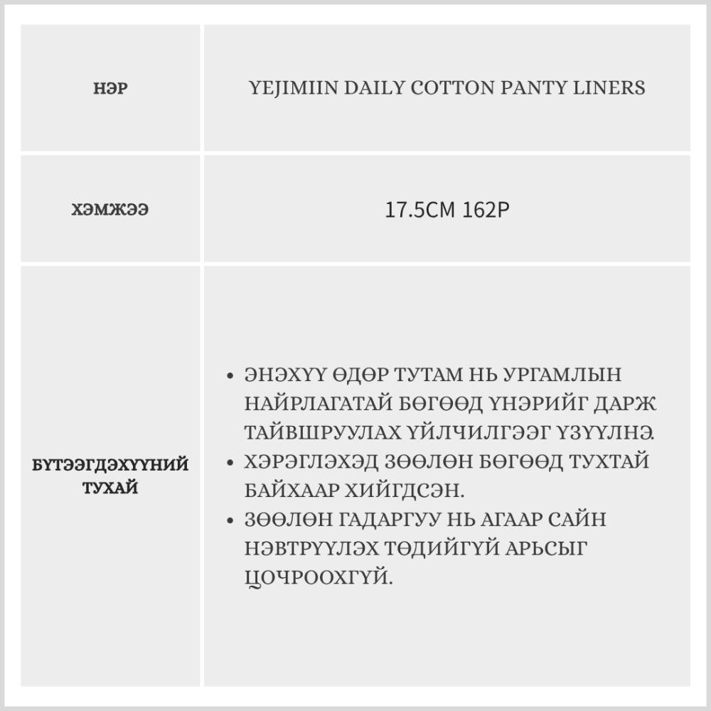 Yejimiin Daily Cotton Panty Liners /Өдөр тутам/
