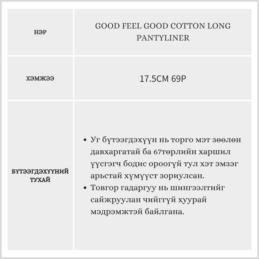 Good Feel Good Cotton Long Pantyliner /Өдөр тутам/