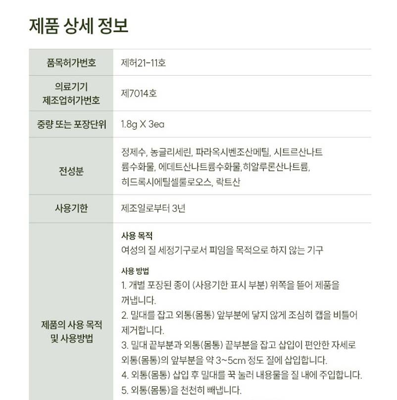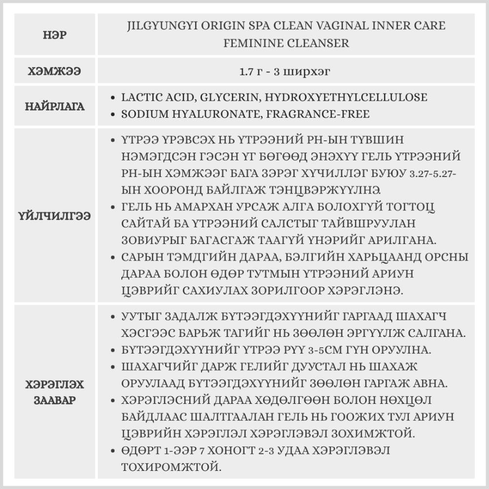 Jilgyungyi Origin Spa Clean Vaginal Inner Care Feminine Cleanser, 1.7g (3p) /Үтрээний гель/