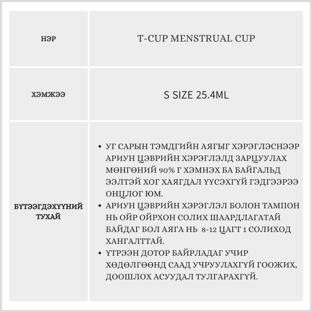 T-Cup Menstrual Cup /Сарын тэмдгийн аяга/