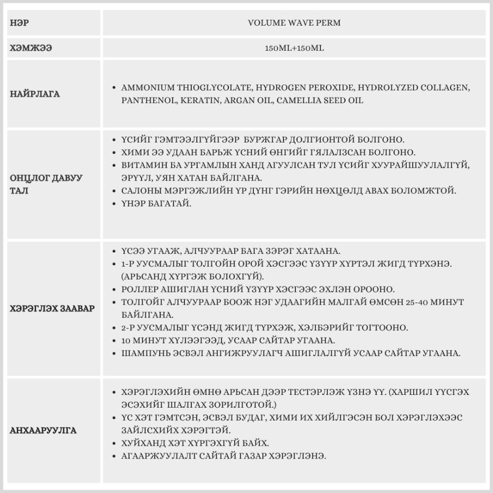VOLUME WAVE PERM /ҮСНИЙ ХИМИ/