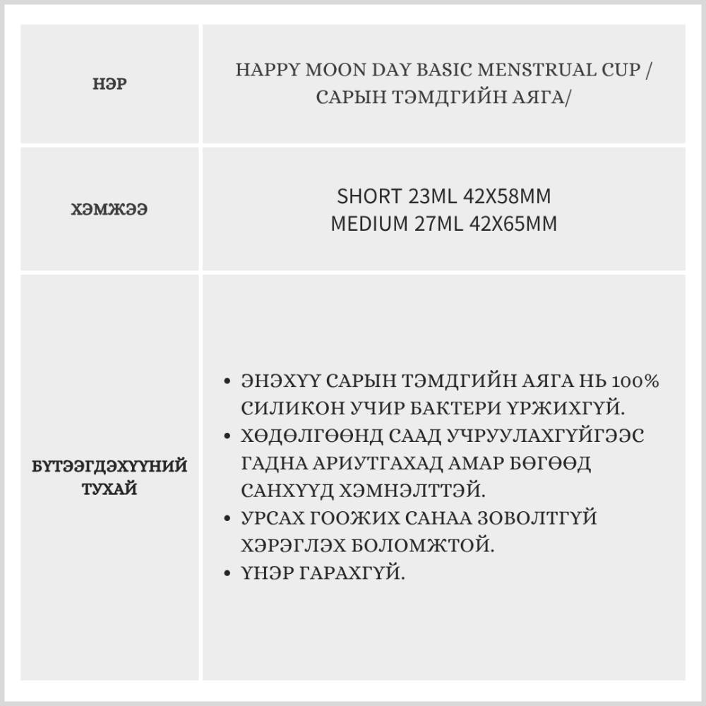 Happy Moon Day Basic Menstrual Cup /Сарын тэмдгийн аяга/
