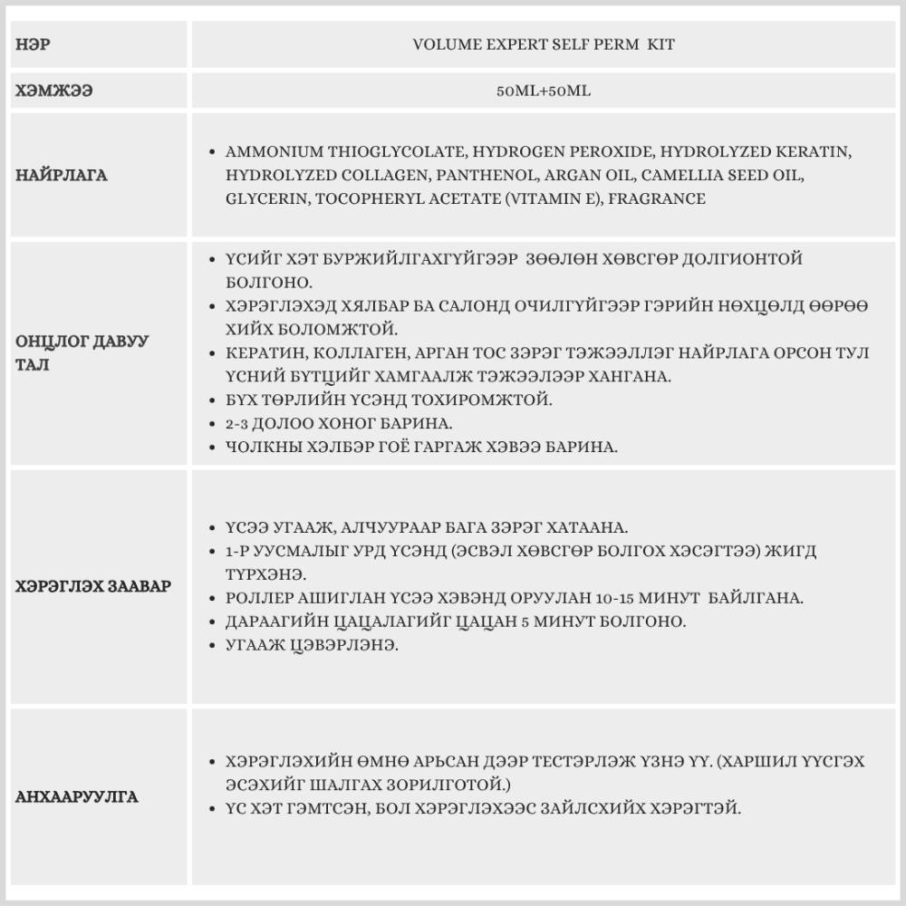 VOLUME EXPERT SELF PERM KIT/ҮСНИЙ ХИМИ/
