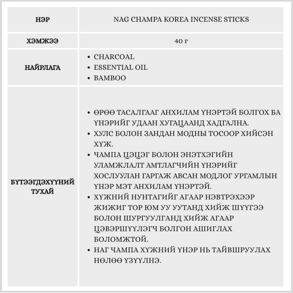 Nag Champa Korea Incense Sticks, 40g /Анхилам үнэрт хүж/
