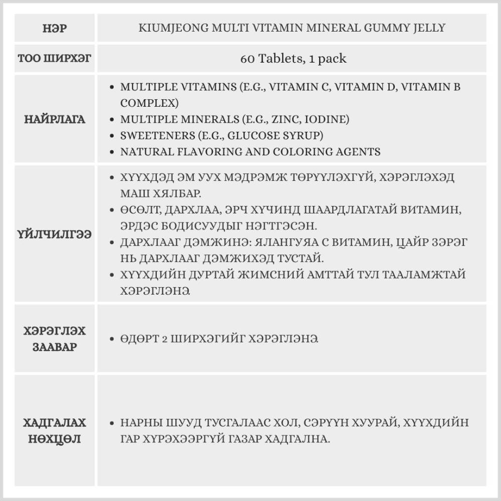 Kiumjeong Multi Vitamin Mineral Gummy Jelly 60 Tablets, 1 pack(хүүхдийн витамин)