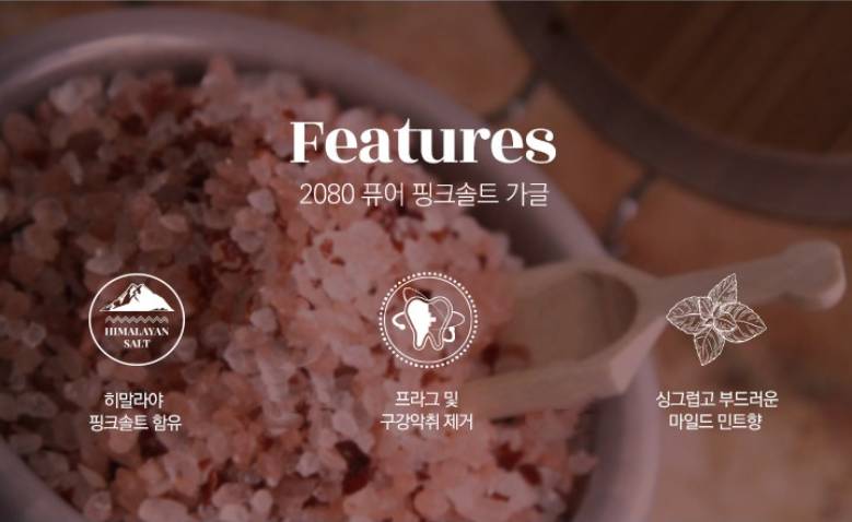 Найрлагадаа Гималайн ягаан давс агуулсан ам зайлагч. Амны хөндийг цэвэрлэж, эвгүй үнэрийг дарах ба давсны найрлага нь шүдний чулууг үр дүнтэй арилгахад тустай.