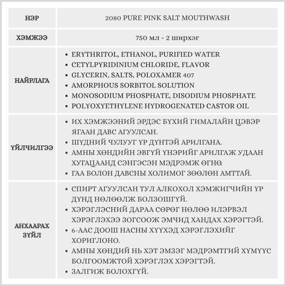 2080 Pure Pink Salt Mouthwash, 750ml (2p) /Ам зайлагч/