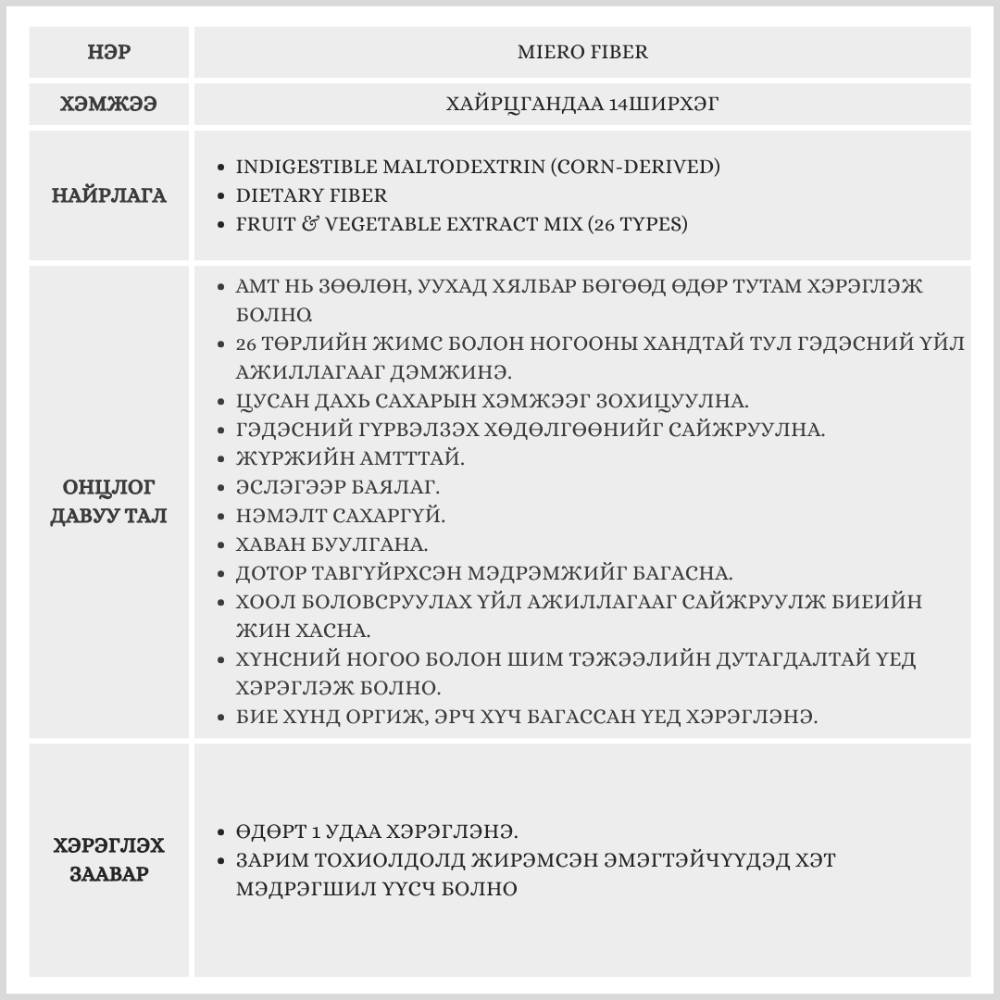 MIERO FIBER / ЖИН ХАСАХ БҮТЭЭГДЭХҮҮН/
