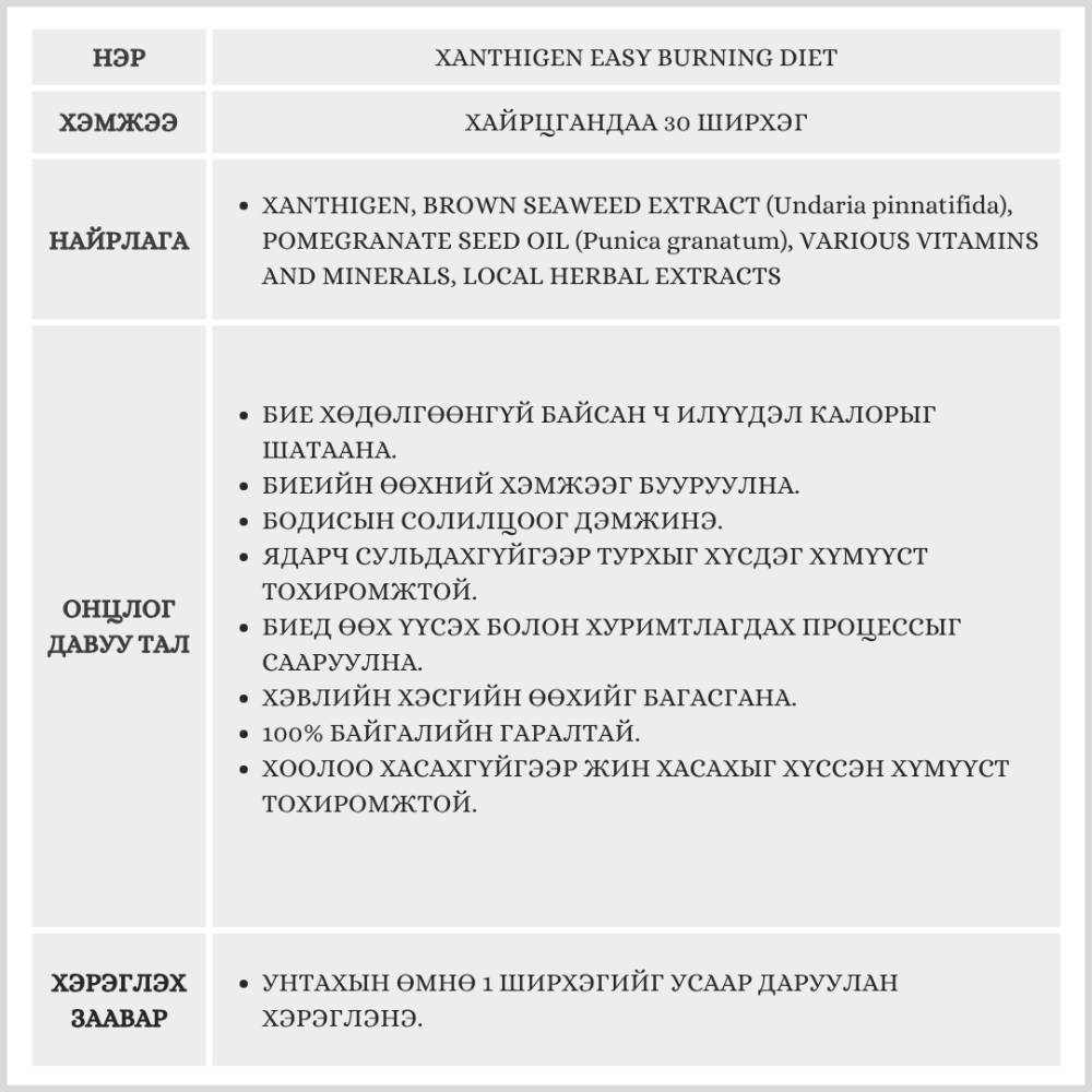 XANTHIGEN EASY BURNING DIET / ЖИН ХАСАХ БҮТЭЭГДЭХҮҮН /
