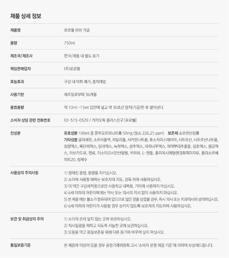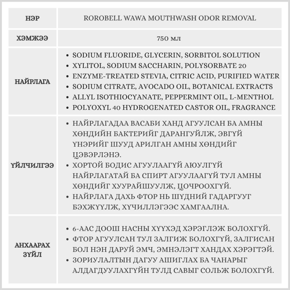 Rorobell WAWA Mouthwash Odor Removal, 750ml /Ам зайлагч/
