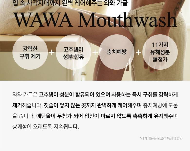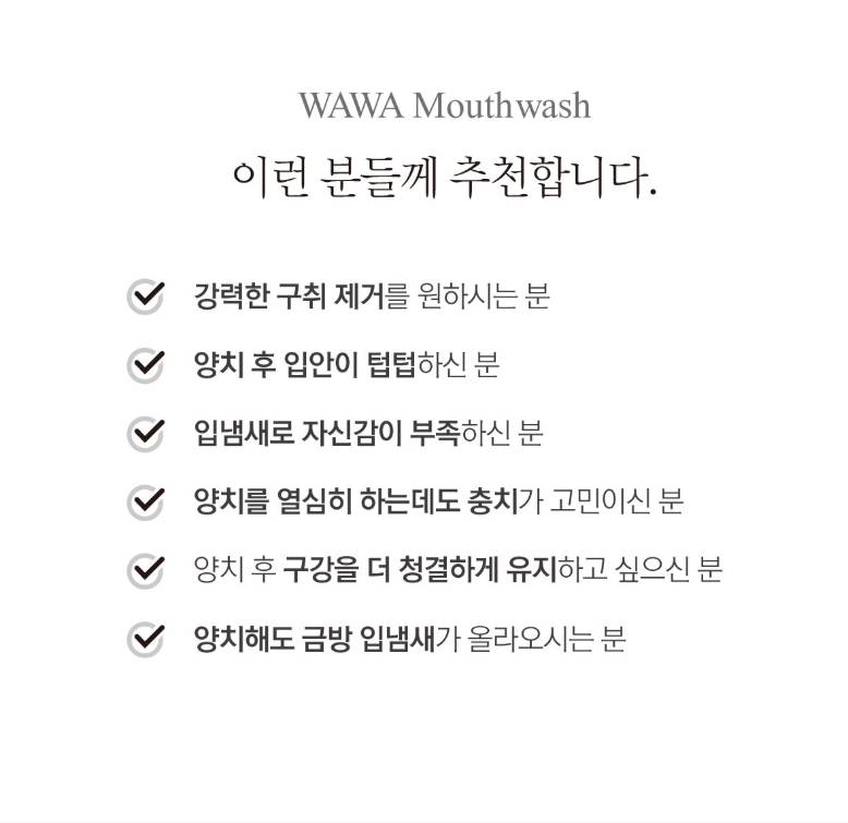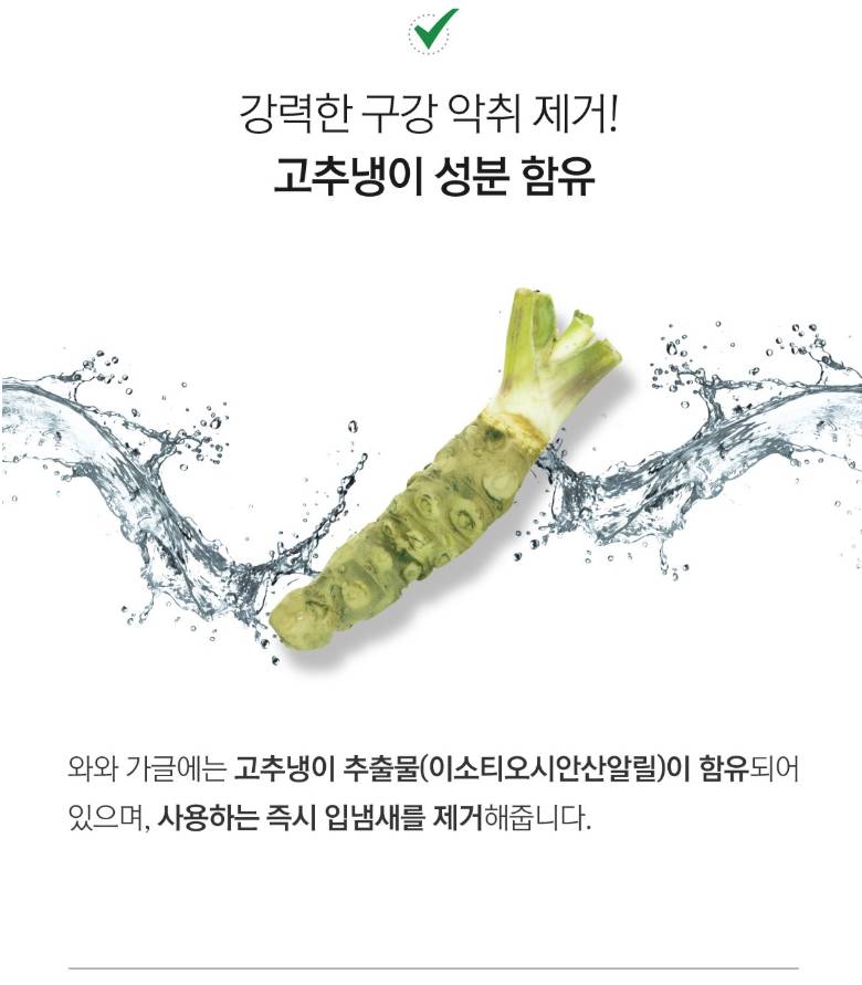 Васаби болон гааны ханд агуулсан амны үнэр зайлагч уусмал. Амны эвгүй үнэрийг үр дүнтэй арилгах ба спирт агуулаагүй тул амны хөндийг хуурайшуулж цочроохгүй.