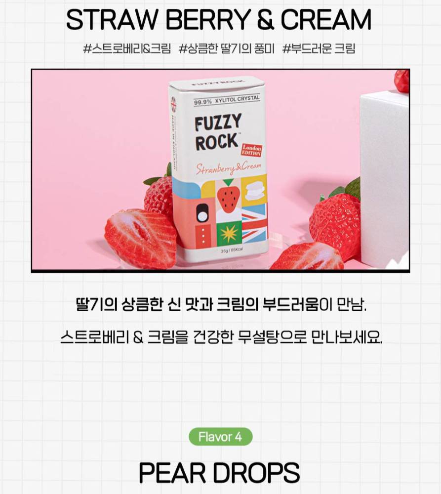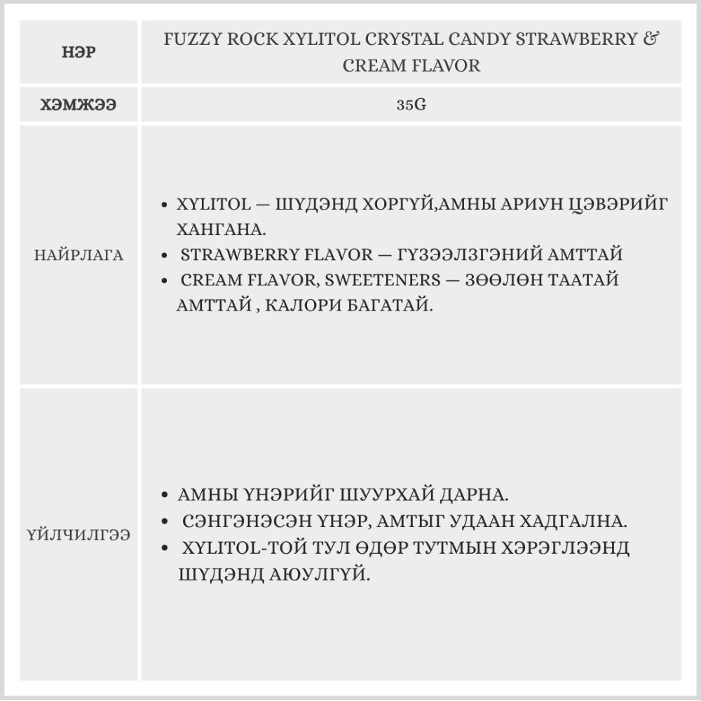FUZZY ROCK XYLITOL CRYSTAL CANDY STRAWBERRY & CREAM FLAVOR, 35G, 1PC /АМНЫ ҮНЭР ДАРАГЧ/