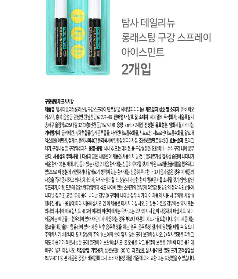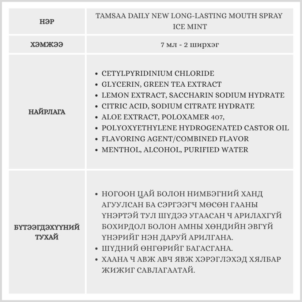 TAMSAA Daily New Long-Lasting Mouth Spray Ice Mint, 7ml (2p) /Амны үнэр дарагч цацлага/