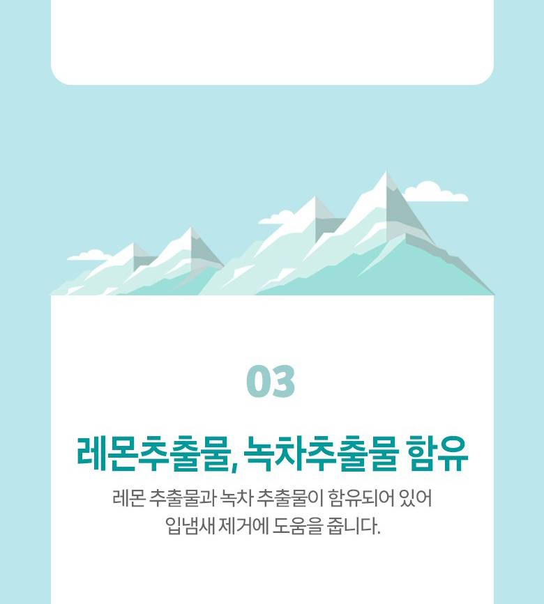 Хүчтэй гааны сэнгэсэн мэдрэмж төрүүлэх амны хөндийн эвгүй үнэр дарагч цацлага. Ногоон цай болон нимбэгний хандтай бөгөөд шүдний өнгөрийг арилгахад тустай.
