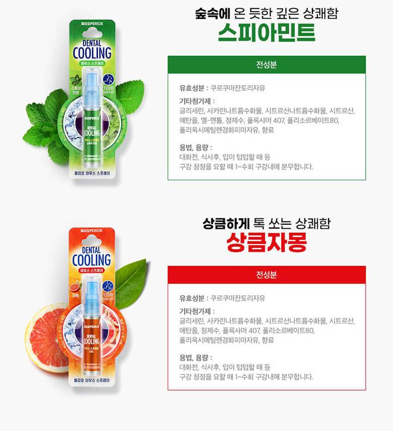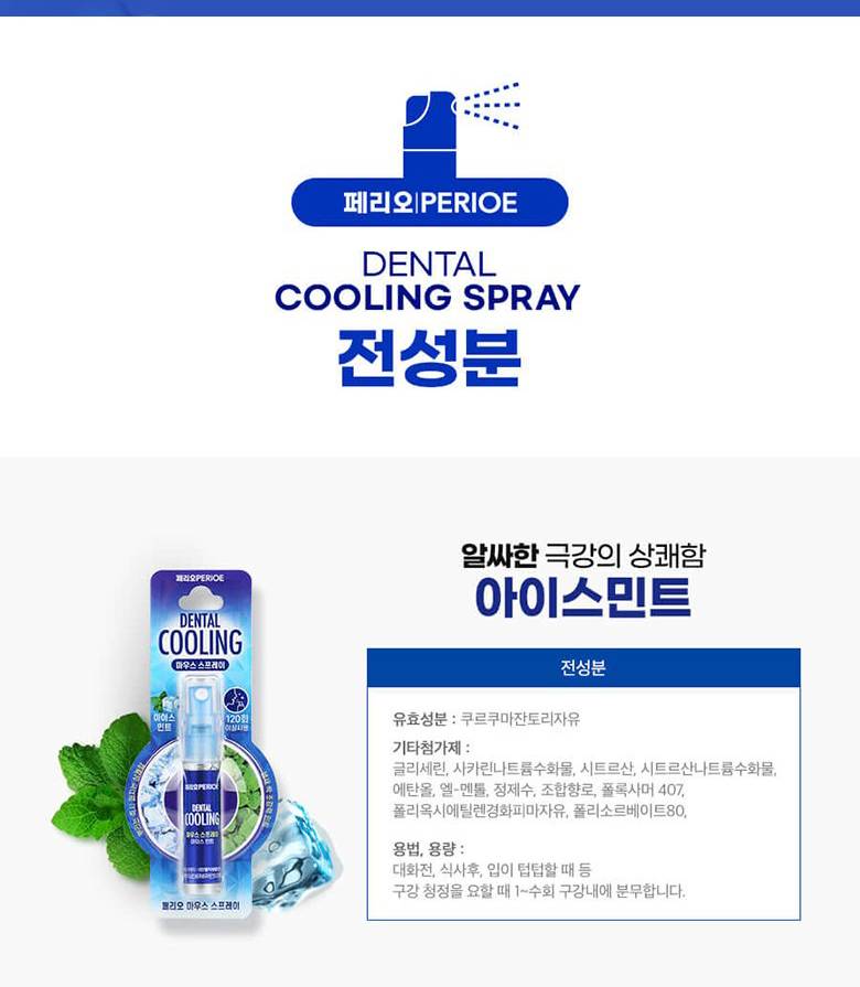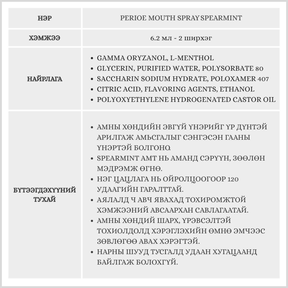 PERIOE Mouth Spray Spearmint, 6.2ml (2p) /Амны үнэр дарагч цацлага/