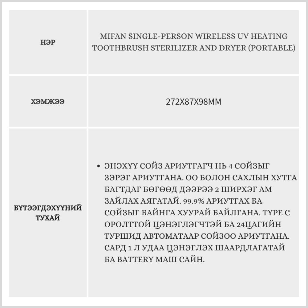 MIFAN Single-Person Wireless UV Heating Toothbrush Sterilizer and Dryer (Portable) /Сойз ариутгагч/