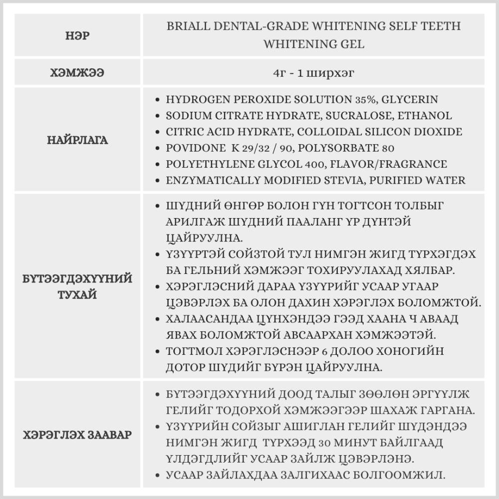BRIALL Dental-grade Whitening Self Teeth Whitening Gel, 4g (1ш) /Шүд цайруулагч гель/