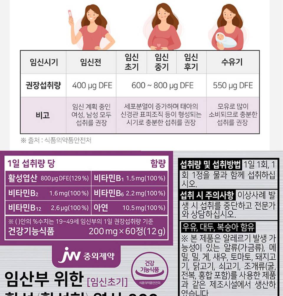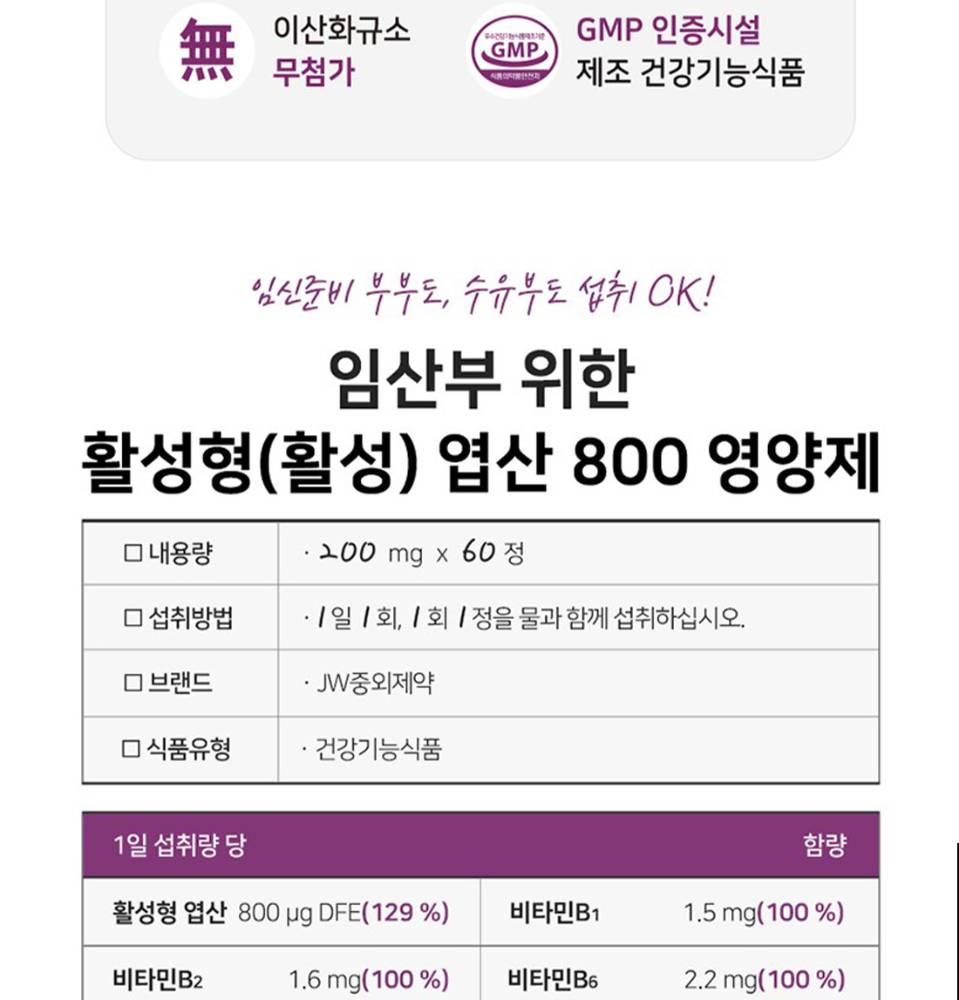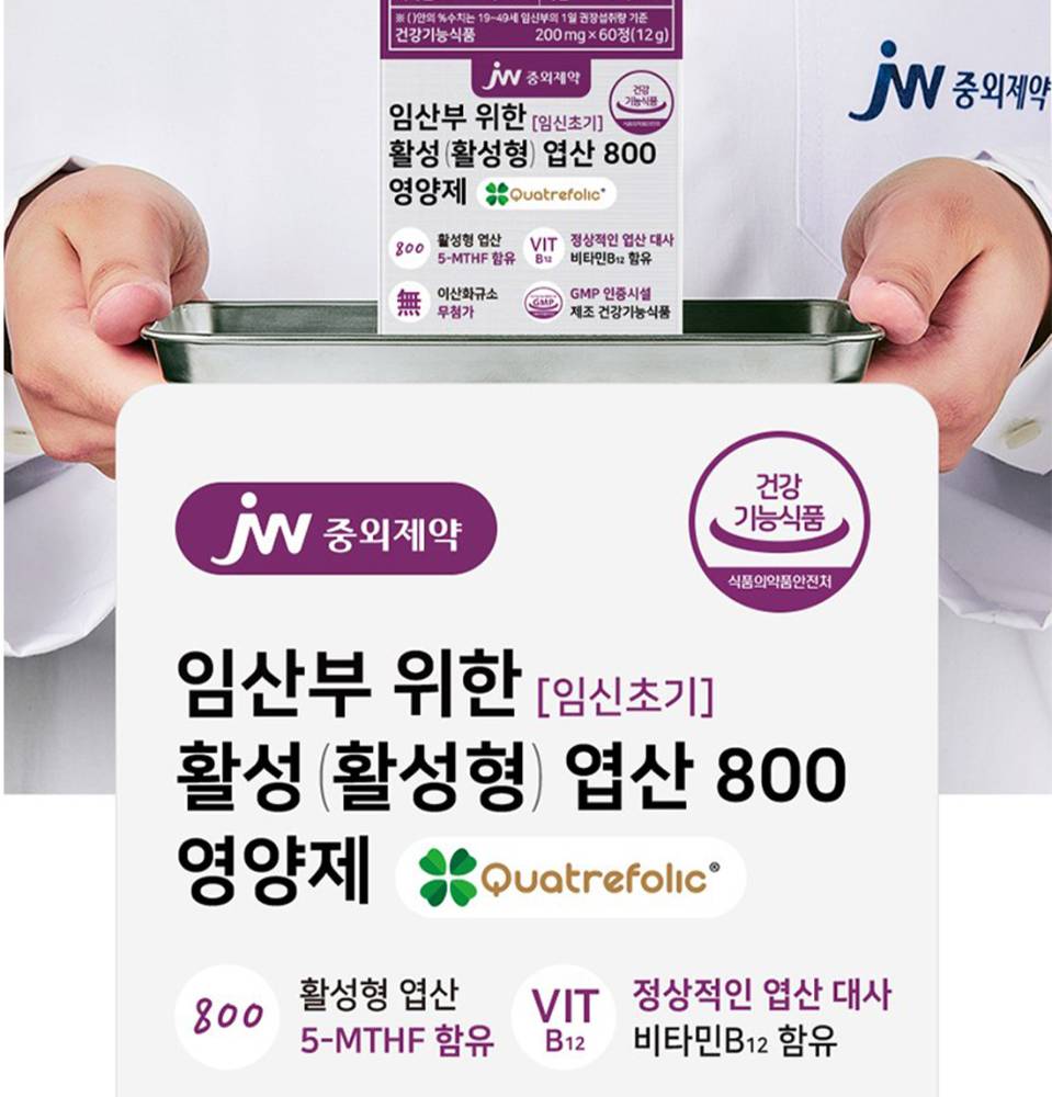 JW Choongwae Active Folic Acid 800 Supplement 60 Tablets, 1 unit(Төмөр / Фолийн хүчил)
