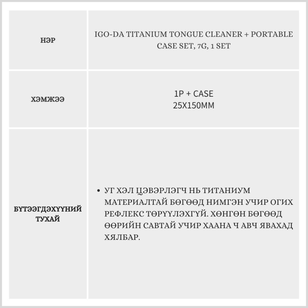 Igo-da Titanium Tongue Cleaner + Portable Case Set, 7g, 1 Set /Хэлний өнгөр цэвэрлэгч/