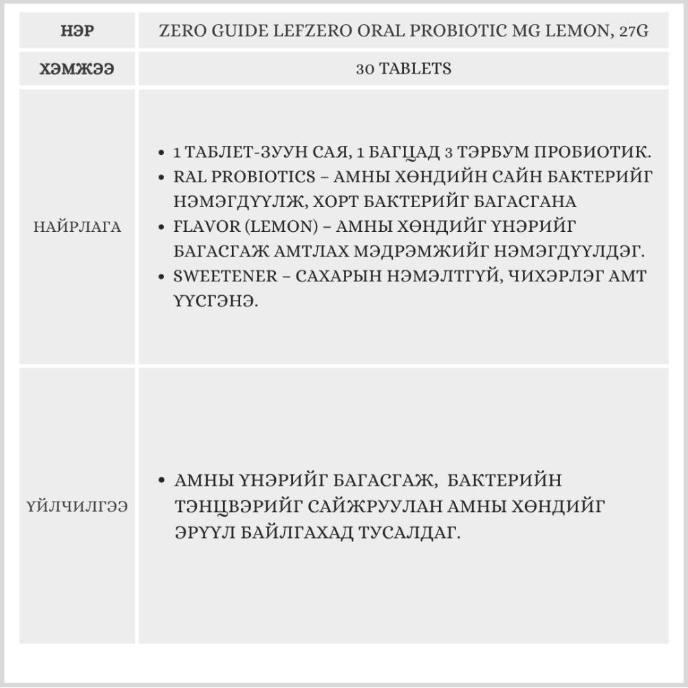 ZERO GUIDE LEFZERO ORAL PROBIOTIC MG LEMON, 27G /Амны хөндийн пробиотик/