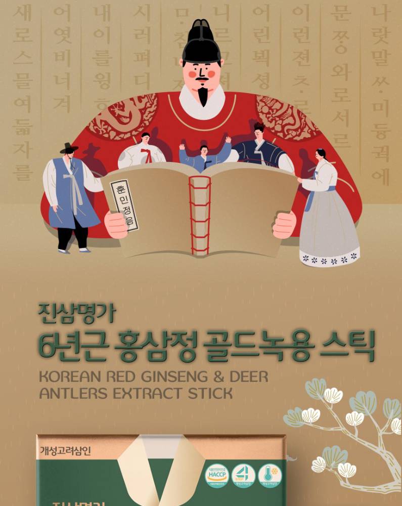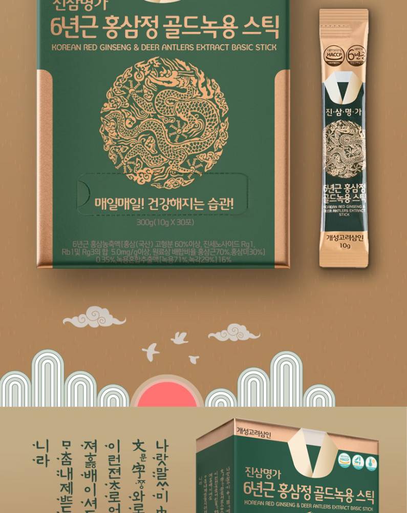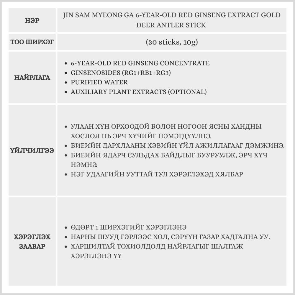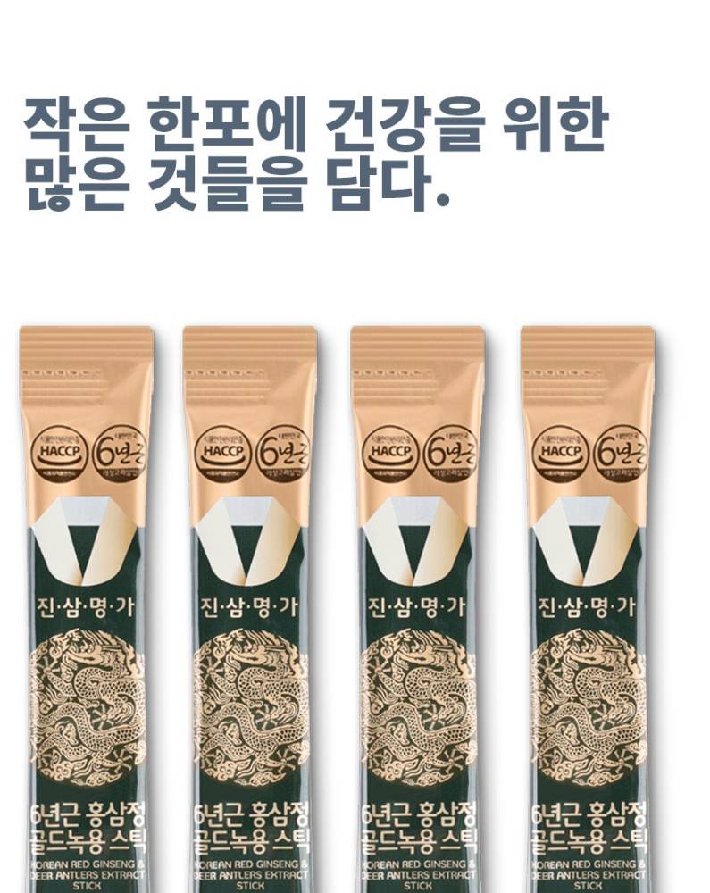 Jin Sam Myeong Ga 6-Year-Old Red Ginseng Extract Gold Deer Antler Stick 30 sticks, 10g (Хүн орхоодой)