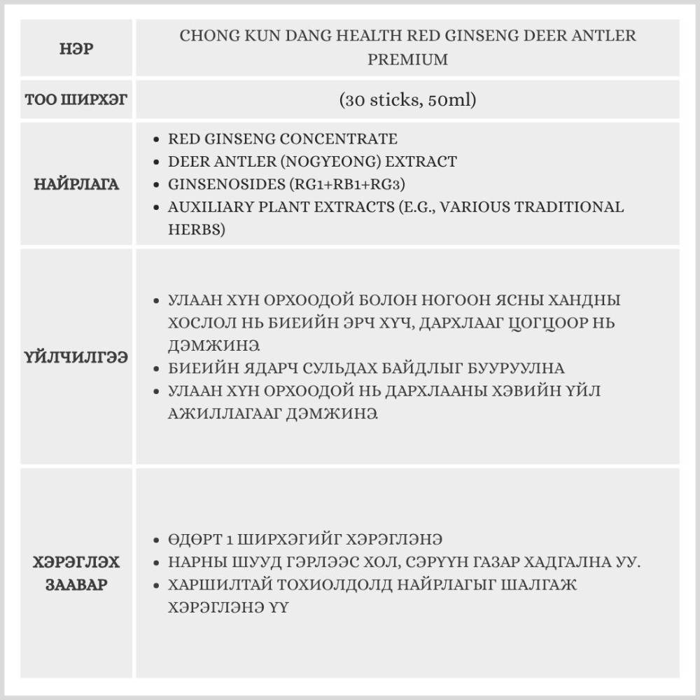 Chong Kun Dang Health Red Ginseng Deer Antler Premium(Хүн орхоодой)