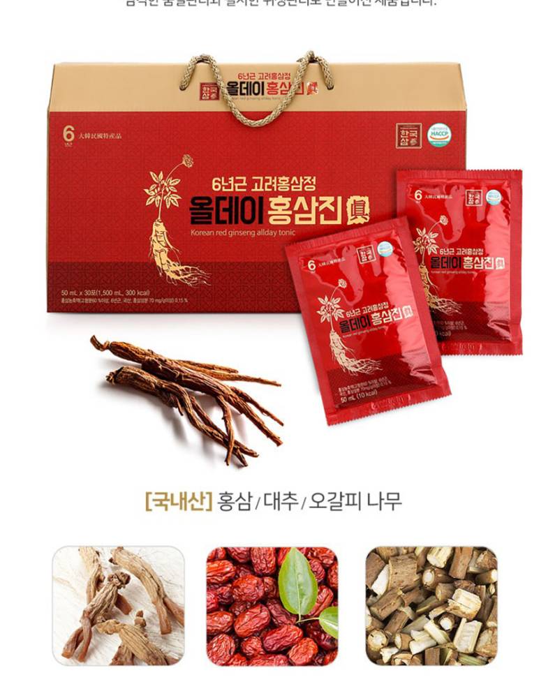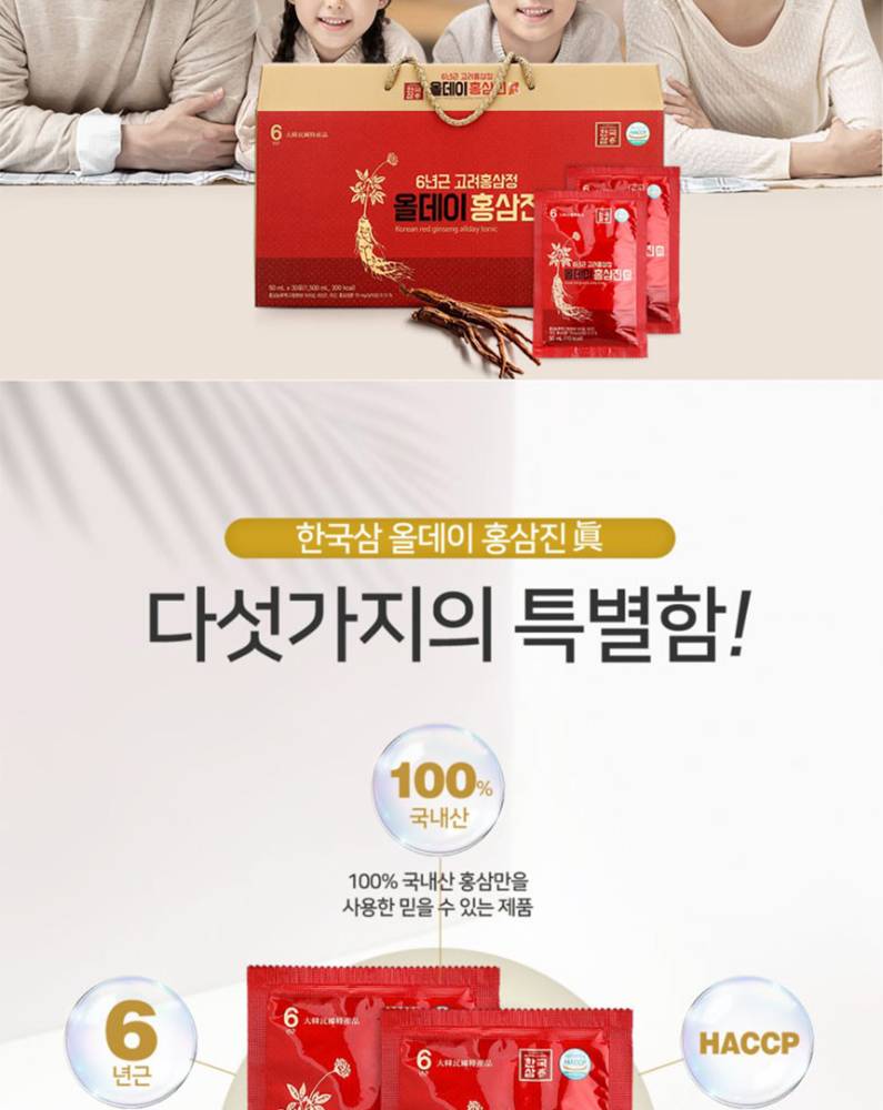 6 настай Солонгосын улаан хүн иеийн дархлааг дэмжих, ядаргааг тайлах зориулалттай бүтээгдэхүүн юм. Гинсенозид (Ginsenoside)-оор баялаг бөгөөд цусны эргэлтийг сайжруулж, ядарч сульдах байдлыг бууруулна.