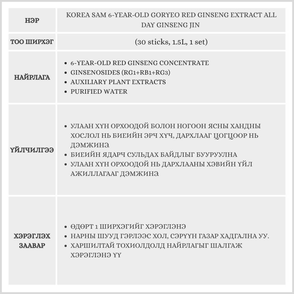 Korea Sam 6-Year-Old Goryeo Red Ginseng Extract All Day Ginseng Jin 30 sticks, 1.5L, 1 set(Хүн орхоодой)