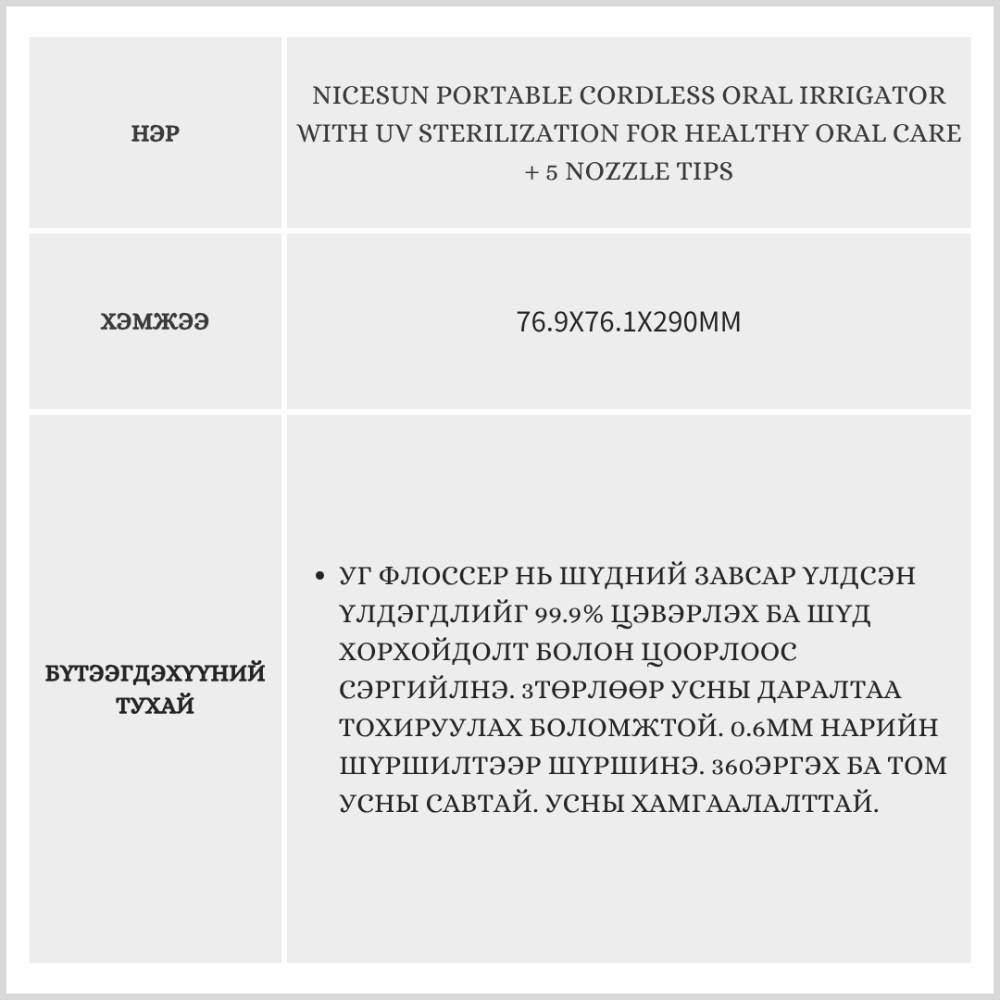 NICESUN Portable Cordless Oral Irrigator with UV Sterilization for Healthy Oral Care + 5 Nozzle Tips /Флоссер/