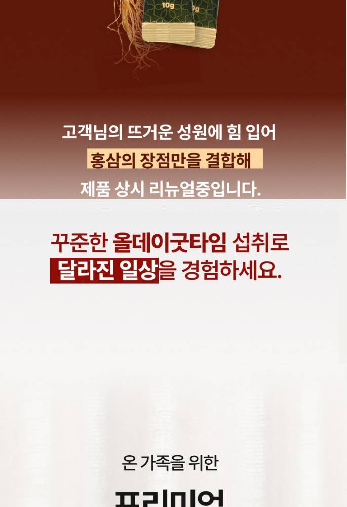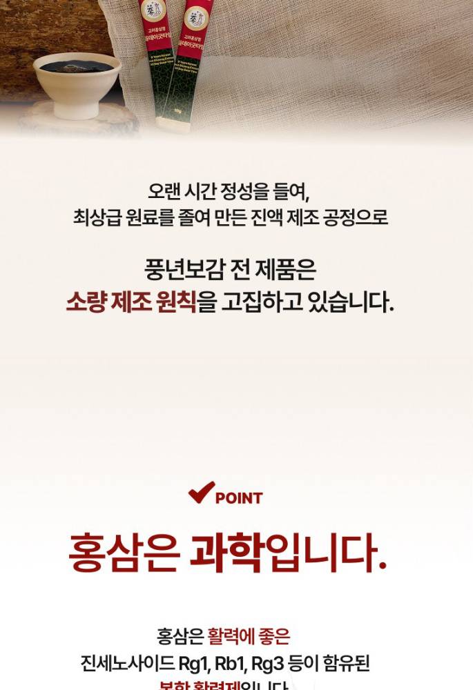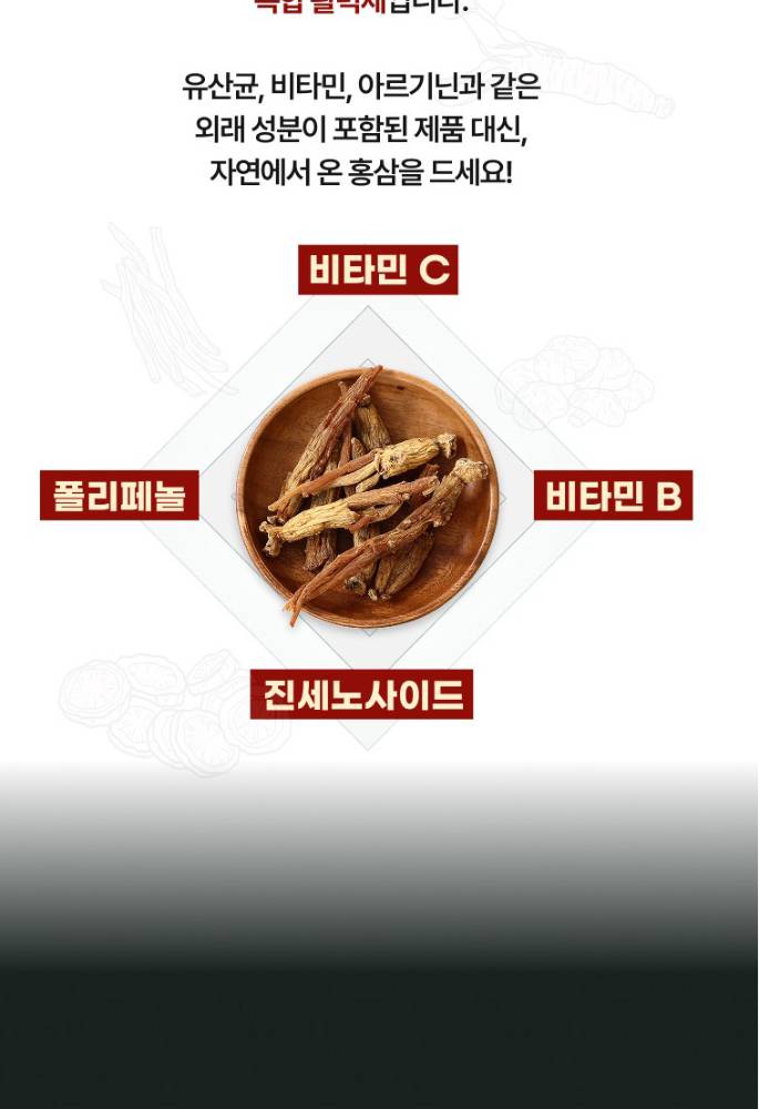 6 настай Солонгосын улаан хүн орхоодойг агуулсан бүтээгдэхүүн юм. Гинсенозид (Ginsenoside)-оор баялаг бөгөөд дархлааг дэмжих, ядаргааг тайлах, цусны эргэлтийг сайжруулах зэрэг үйлчилгээтэй.