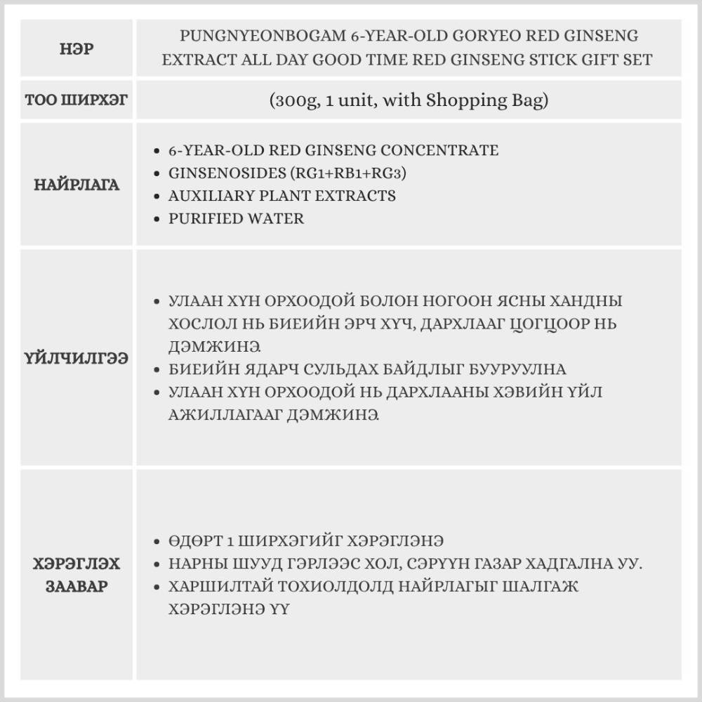 Pungnyeonbogam 6-Year-Old Goryeo Red Ginseng Extract All Day Good Time Red Ginseng Stick Gift Set 300g, 1 unit, with Shopping Bag(Хүн орхоодой)