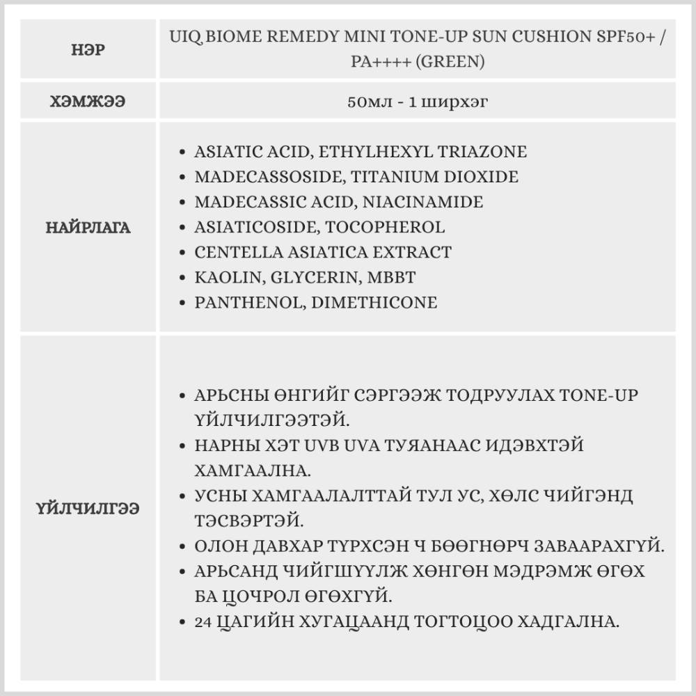 Арьсны өнгийг өргөж тодруулах, Tone-up үйлчилгээтэй нарны cushion. Нарны хэт ягаан туяанаас найдвартай хамгаалах ба тогтоцоо 24 цагийн турш хадгална.