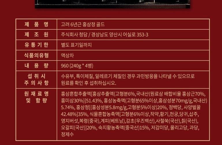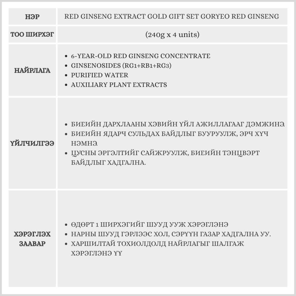 Red Ginseng Extract Gold Gift Set Goryeo Red Ginseng 240g x 4 units(Хүн орхоодой)