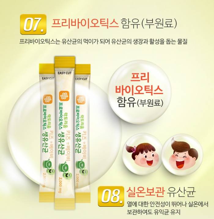 Энэхүү хүүхдийн ашигтай бактери нь 50ширхэгтэй. Өдөрт 1 уут ууснаар ашигтай пробиотик бактерийн өсөлтийг нэмэгдүүлж, хортой бактерийг дарангуйлах, мөн бие засах үйл ажиллагааг хэвийн болгоход туслах хүүхдийн ашигтай бактери юм