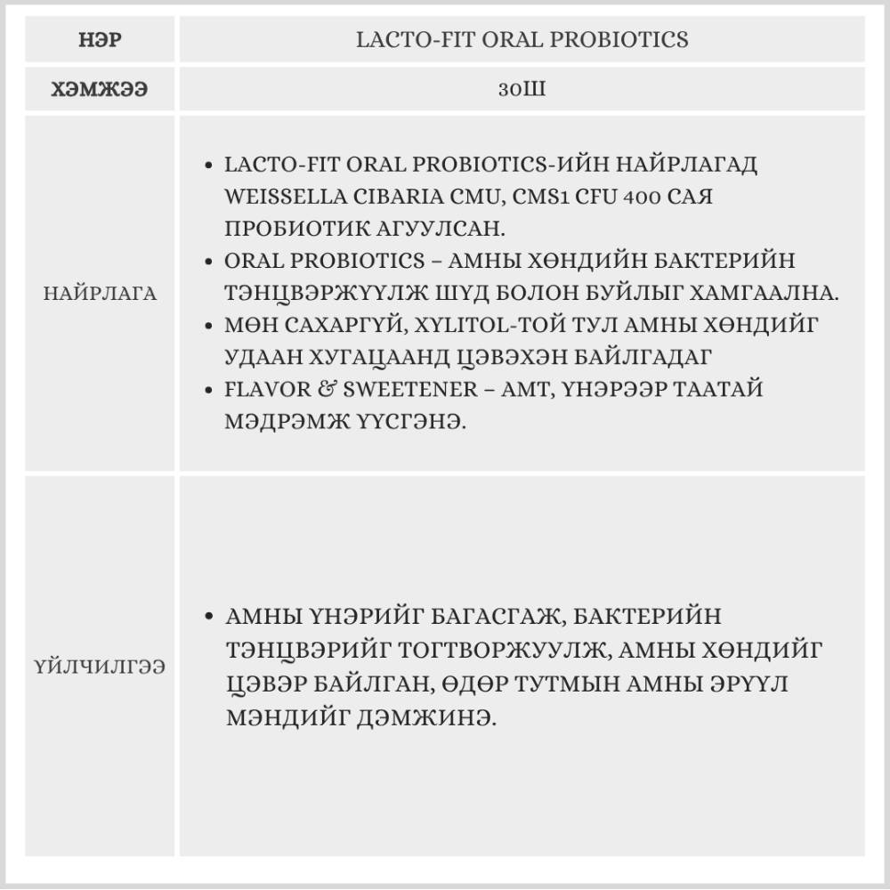 LACTO-FIT ORAL PROBIOTICS, 30 TABLETS /Амны хөндийн пробиотик /