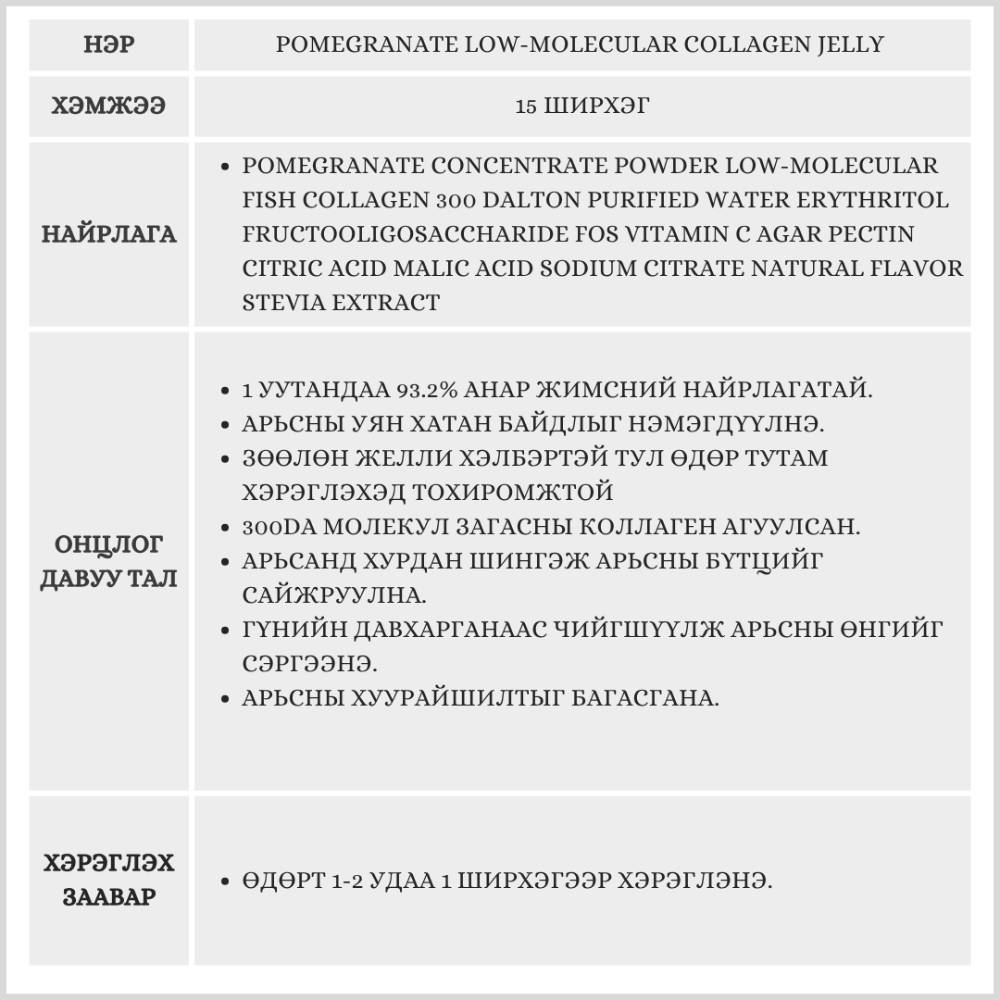 93.2% АНАР ЖИМСНИЙ НАЙРЛАГАТАЙ ЗАГАСНЫ КОЛЛАГЕН АГУУЛСАН ЖЕЛЛИ.