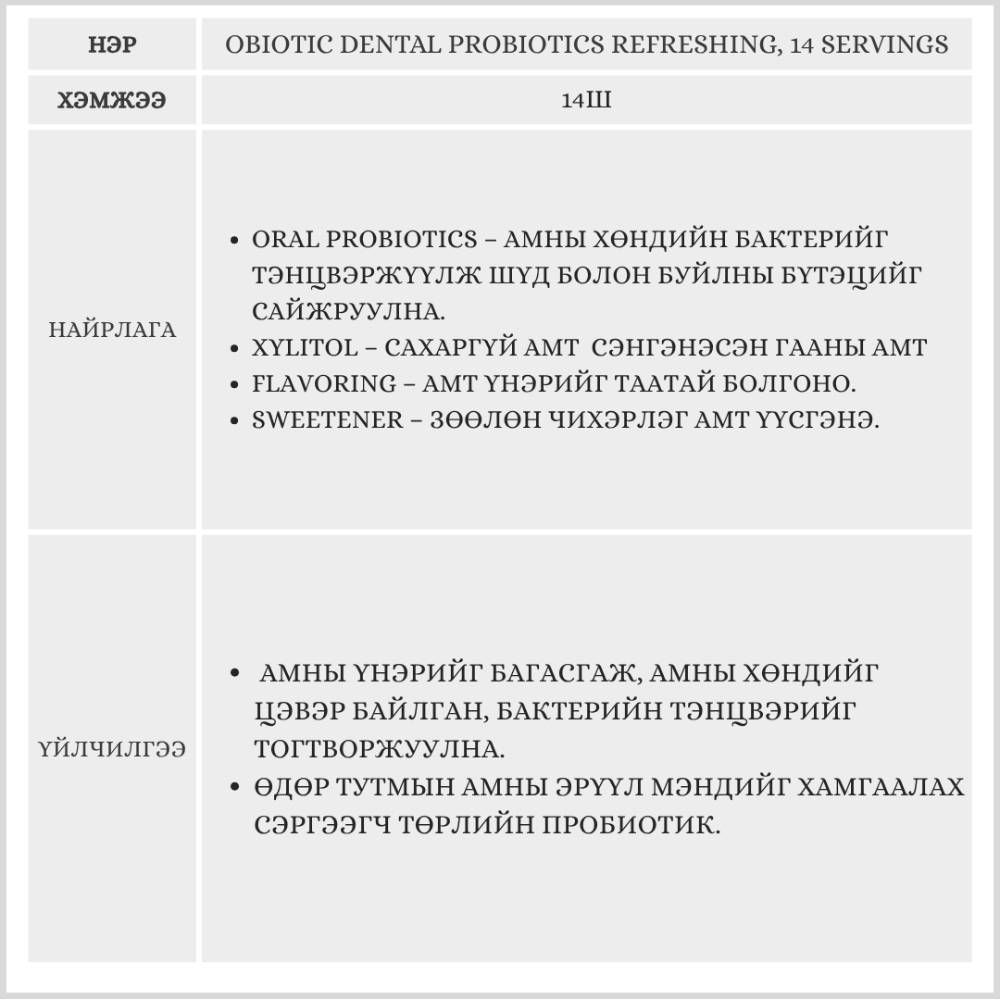 OBIOTIC DENTAL PROBIOTICS REFRESHING, 14 SERVINGS /Амны хөндийн пробиотик /