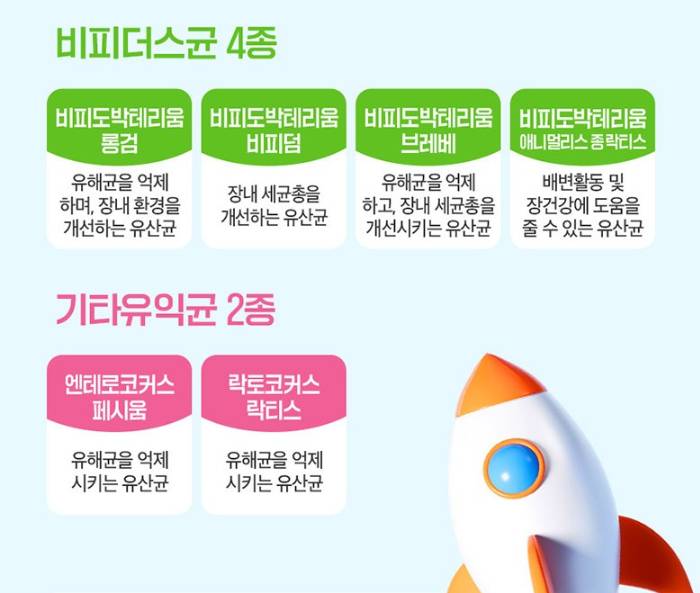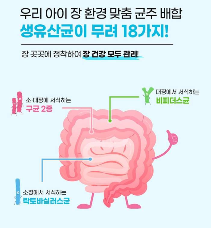 Энэхүү ашигтай бактери нь 60ширхэгтэй ба 3 сарын хэрэглээг багтаасан. D3 агуулсан тул ясны сийрэгжилтээс хамгаална. Нийт 18 төрлийн ашигтай бактери болон цайр агуулсан. 12оос дээш сартай хүүхдүүдэд тохиромжтой.