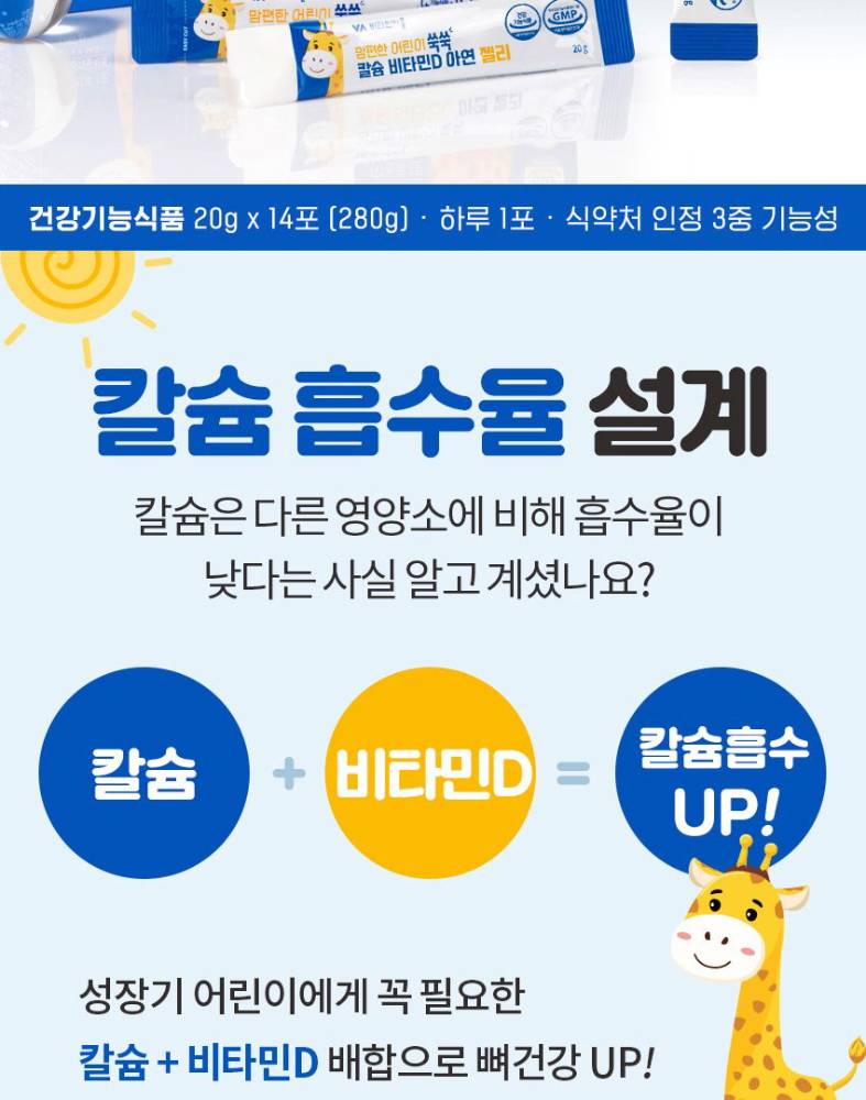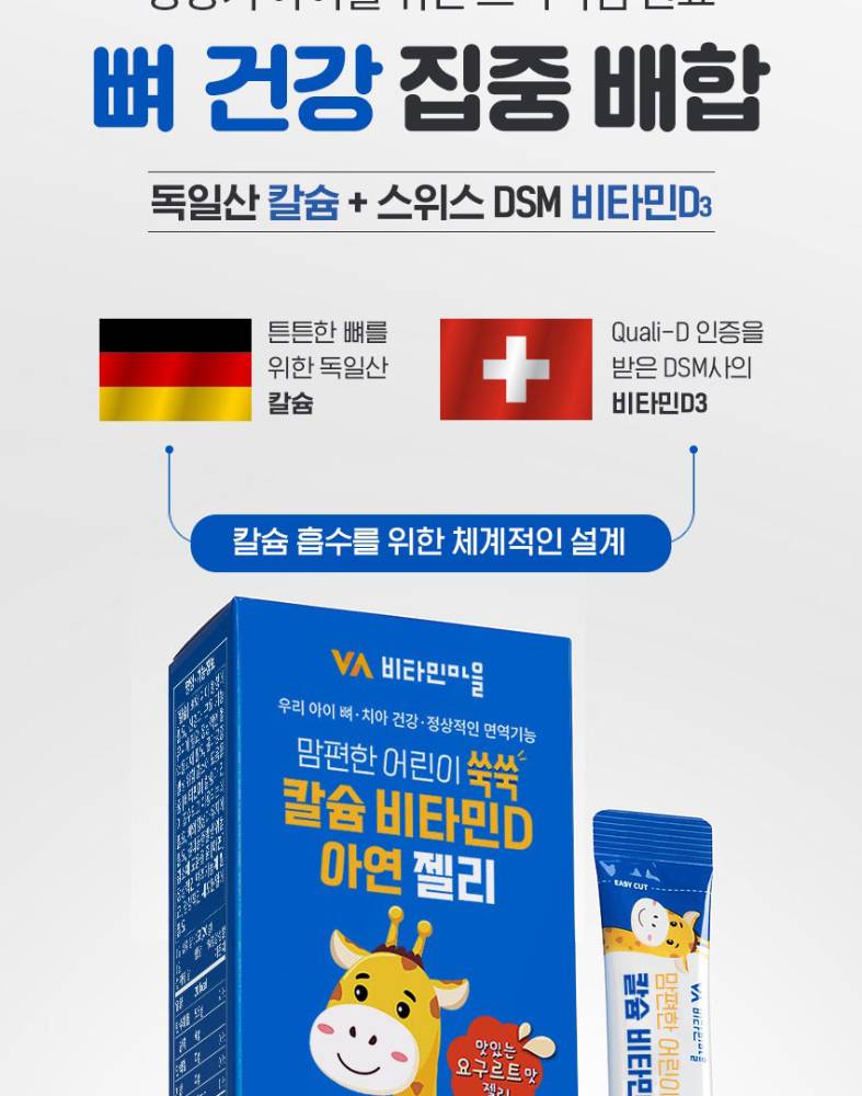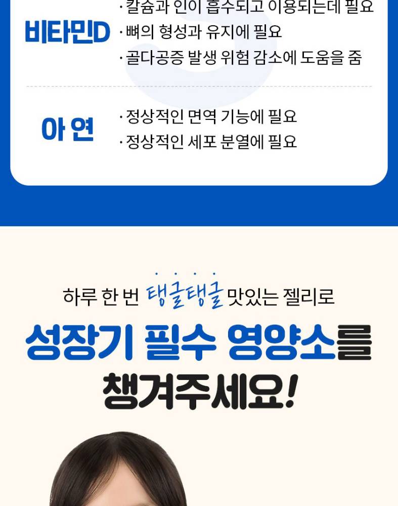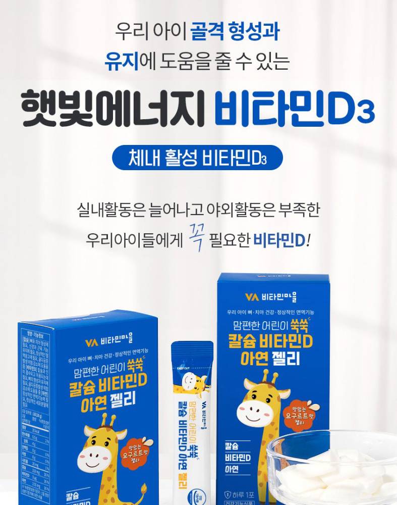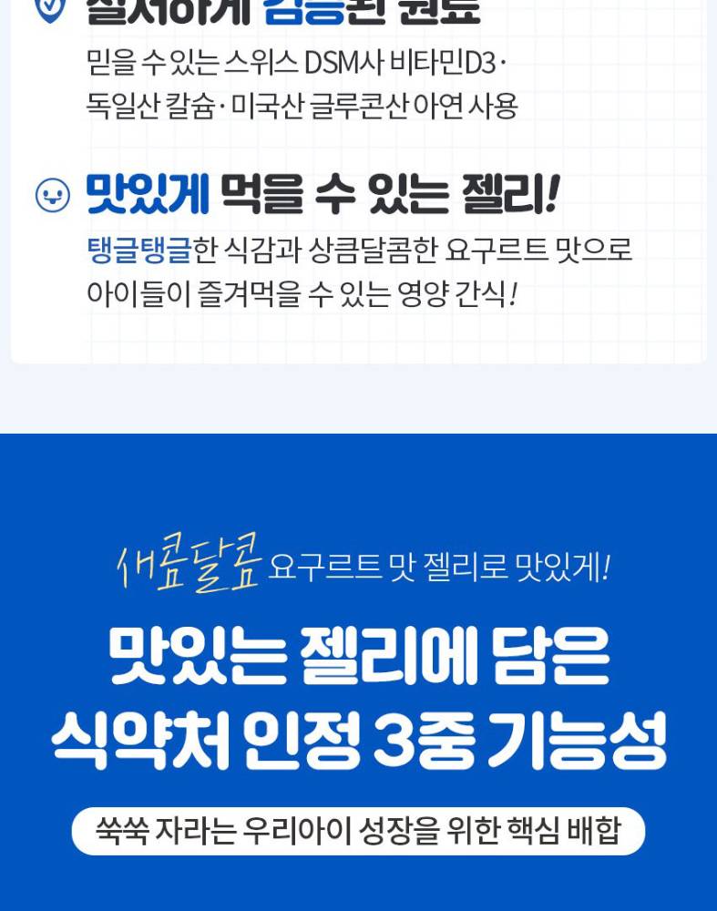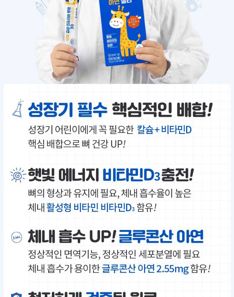 Хүүхдийн өсөлт, ясны бэхжилт болон дархлааны асуудлыг нэг дор шийдэх зорилготой, амттай желли хэлбэрийн нэмэлт тэжээл юм. Ясанд чухал Кальци, D витамин, мөн дархлаанд хэрэгтэй Цайр зэрэг гурван гол тэжээлийг агуулсанаараа онцлог.